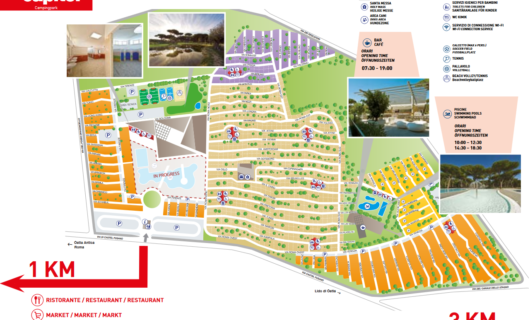 Het terrein is ruim 26 hectare groot, in een beschermd pijnbomenbos. De mix van respect voor de natuur met het modernste comfort is overal op het park terug te zien. De mobile homes en kampeerplaatsen zijn zo ingericht dat ze aan alle hedendaagse vakantiewensen voldoen.